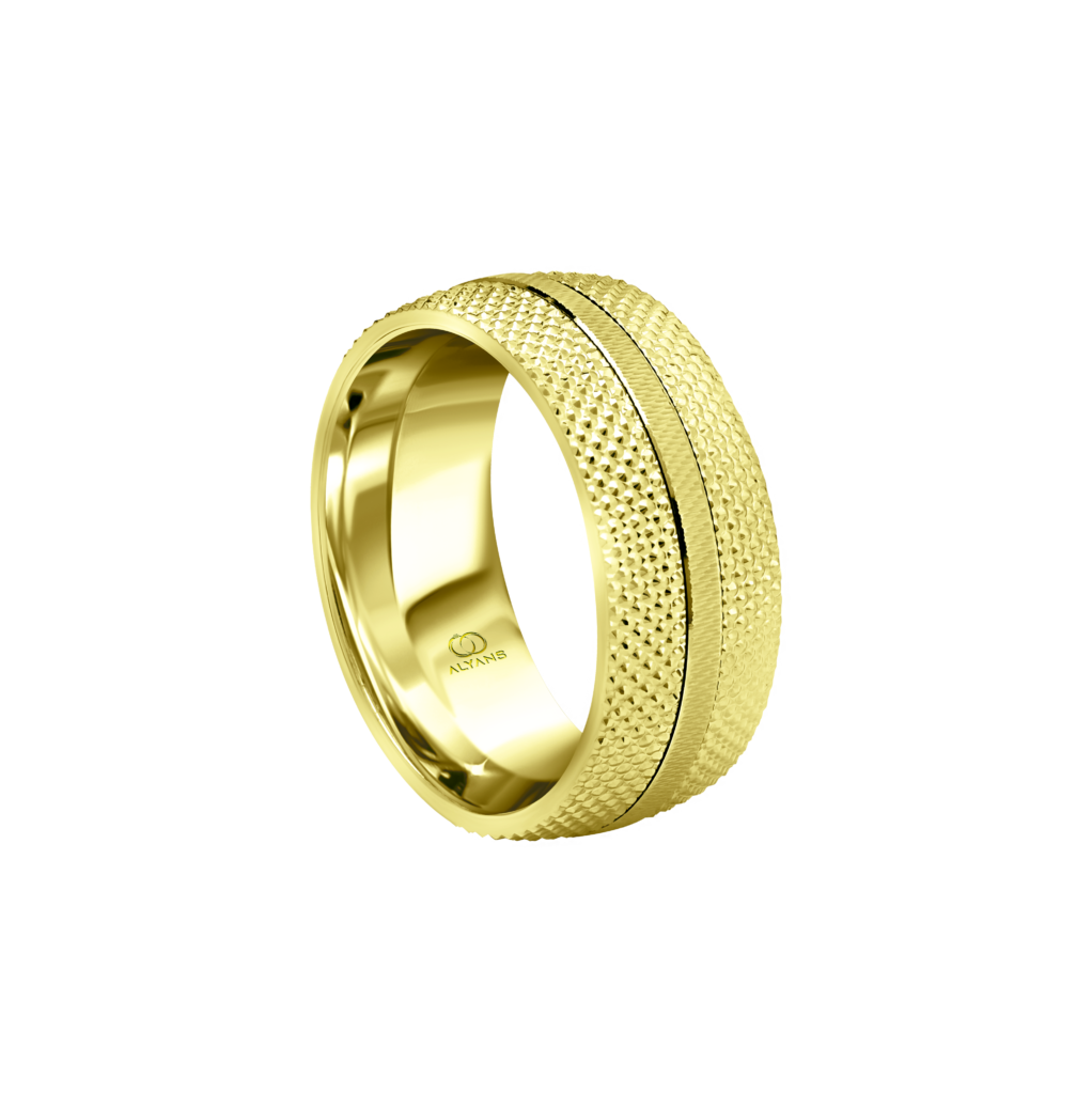 Elevate your bridal style with this sophisticated gold wedding ring, featuring a stunning and unique design.
