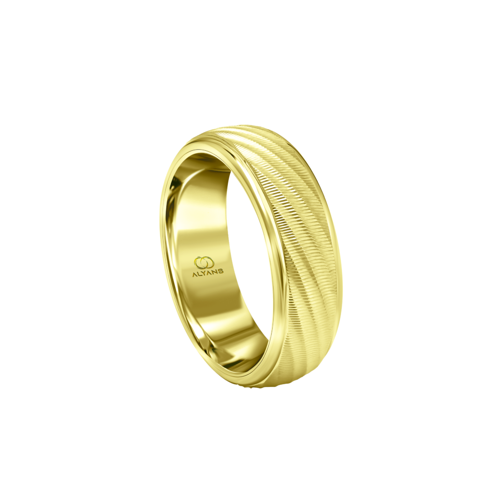 Embrace the artistry of love with this mesmerizing gold wedding ring, featuring intricate details that capture the heart.