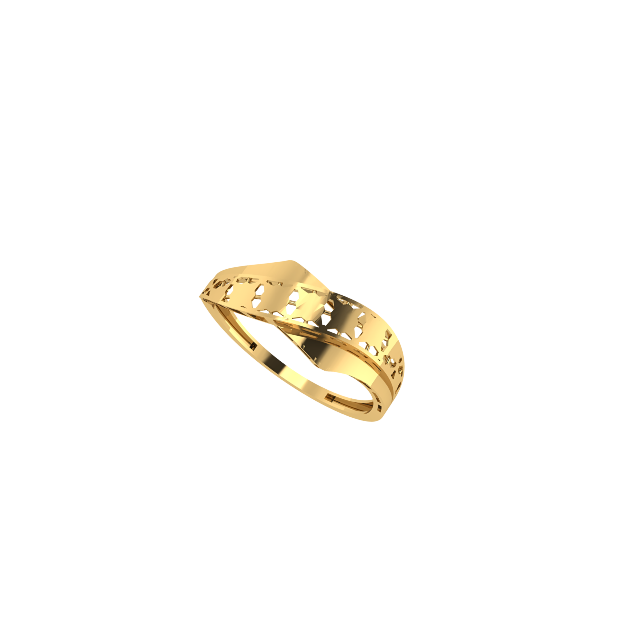A captivating gold wedding ring, wider than usual, adorned with mixed patterns that intertwine in a mesmerizing display of style and grace.