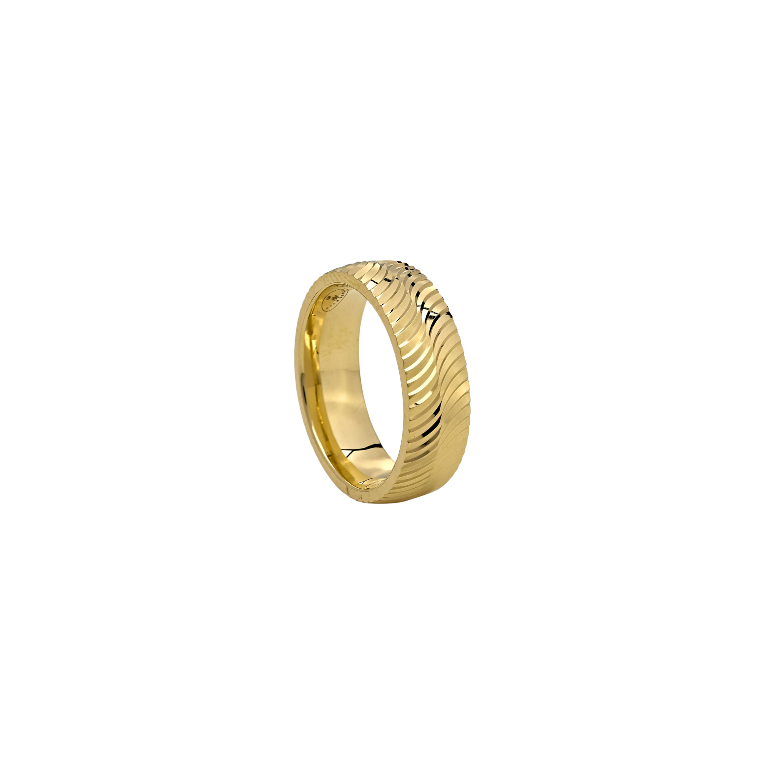Radiating timeless charm, this gold wedding ring features an elegant design that steals the spotlight.