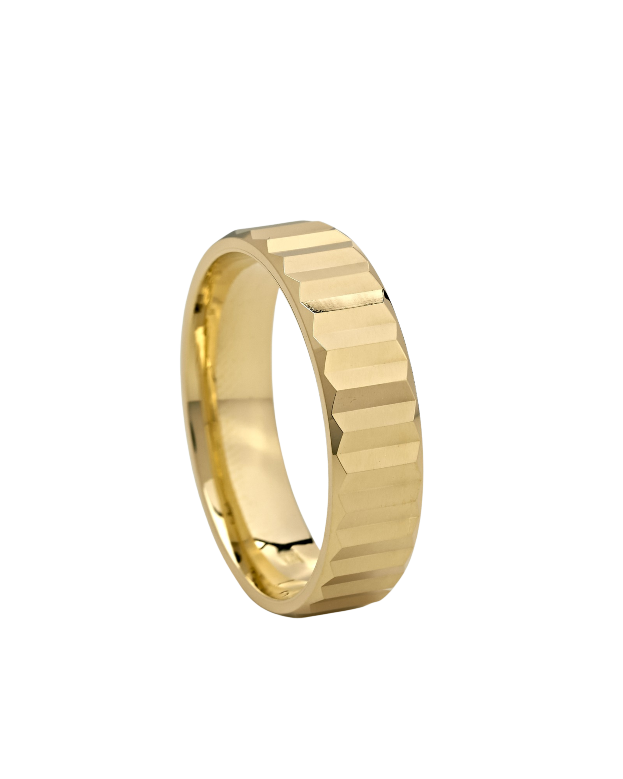 Introducing our exquisite gold wedding ring, adorned with sleek lines of gold on the sides that gracefully embrace a central band of radiant rose gold, creating a captivating design that symbolizes the perfect union of love and elegance.